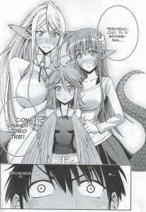 Il mese scorso il mio cugino pluriripetente, quello che ha scoperto il sesso prima di tutti portando le ragazze a due a due sulla sellona ribaltabile del suo motorino truccato, mi ha fatto avere su un foglio di carta da macelleria stropicciato la recensione di Monster Musume (liberamente traducibile ne: “Le ragazze mostro”), pregandomi di pubblicarla perché: “gli era troppo piaciuto”.
