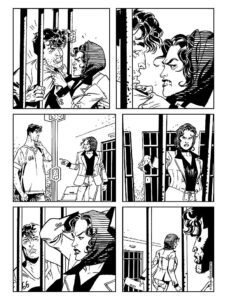 A coadiuvare la Barbato ai disegni abbiamo un Franco Saudelli un po’ sottotono, o perlomeno non in perfetta sintonia con il mood della storia soprattutto nelle pagine iniziali, più cupe e “disperate”, dove il suo tratto non riesce a valorizzare come si spererebbe l’enfasi di alcune fasi della narrazione. Le sue abilità narrative si riprendono con il procedere della storia (cfr. ad es. pag.44, soprattutto l’ultima vignetta) e il suo tratto “veloce” riprende quota, sposandosi bene con il ritmo della storia che pian piano accelera e cambia tono.
