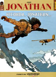 Skorpio pubblica i 9 episodi apparsi tra il 1975 e il 1982 sulle pagine della rivista Tintin (e poi serializzati da Lombard tra il 1977 e il 1983) e lo fa in 27 uscite settimanali praticamente senza interruzioni: Jonathan salta infatti solo il numero 47 della VII annata. Cosey realizzerà in seguito altri albi della serie, a partire dal dittico ambientato negli Stati Uniti – in cui ritrova Kate, già protagonista dell’albo eponimo – ma con pubblicazioni sempre più diradate nel tempo fino al 2013, per un totale di 16 albi. Come per altre BD di cui abbiamo parlato in questa rubrica, i lettori italiani ringraziano la Gazzetta dello Sport che ristampa tutti gli albi di Jonathan nel 2017, nei numeri da 72 a 79 con cui si conclude la Collana Avventura venduta in allegato con il giornale.