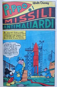 Suo malgrado, si beccherà una dose extra di “spazzolate” in testa da parte di Nocciola perché in séguito Topolino, appassionatosi alla missilistica con il caso, ha comprato un piccolo missile radiocomandato e lo ha spedito, con una certa fantasia, nello spazio. E Pippo lo aveva appena firmato con il suo nome.