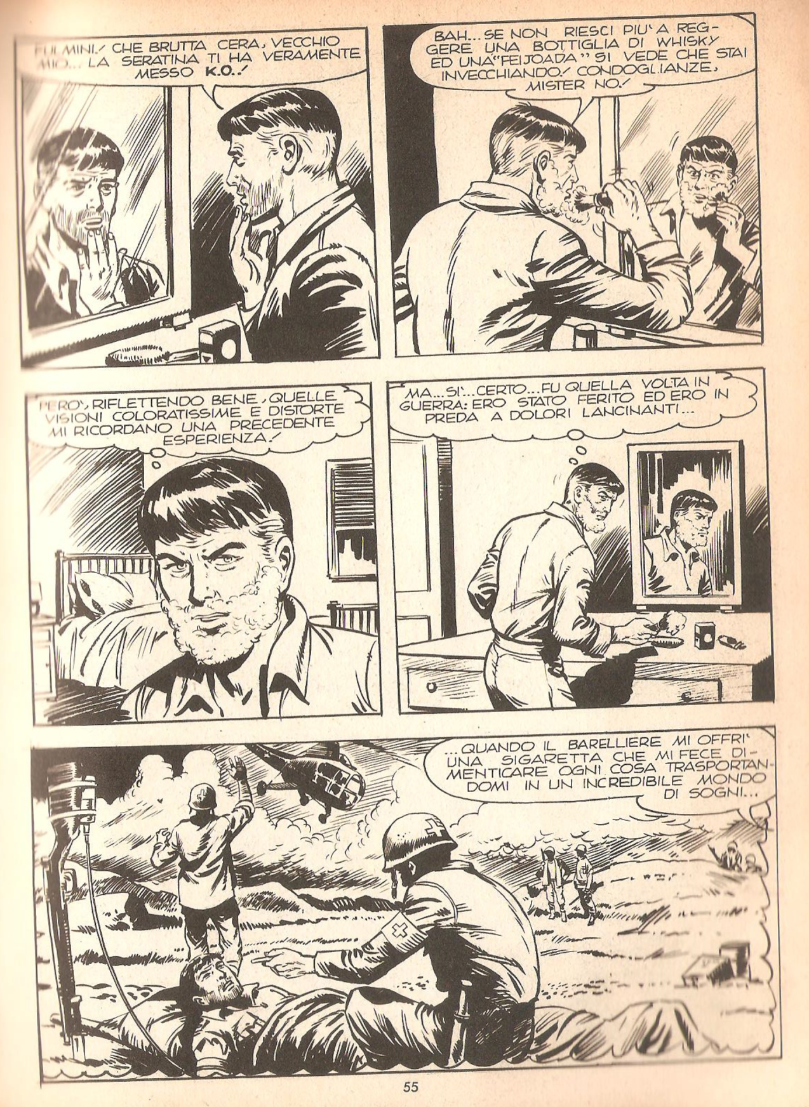 Jerry Drake è un pilota statunitense che vive le sue avventure nell’Amazzonia degli anni Cinquanta. Soprannominato Mister No per la sua poca affabilità, ha combattuto la Seconda Guerra Mondiale e ora accompagna i turisti nei cieli della sua nuova patria.