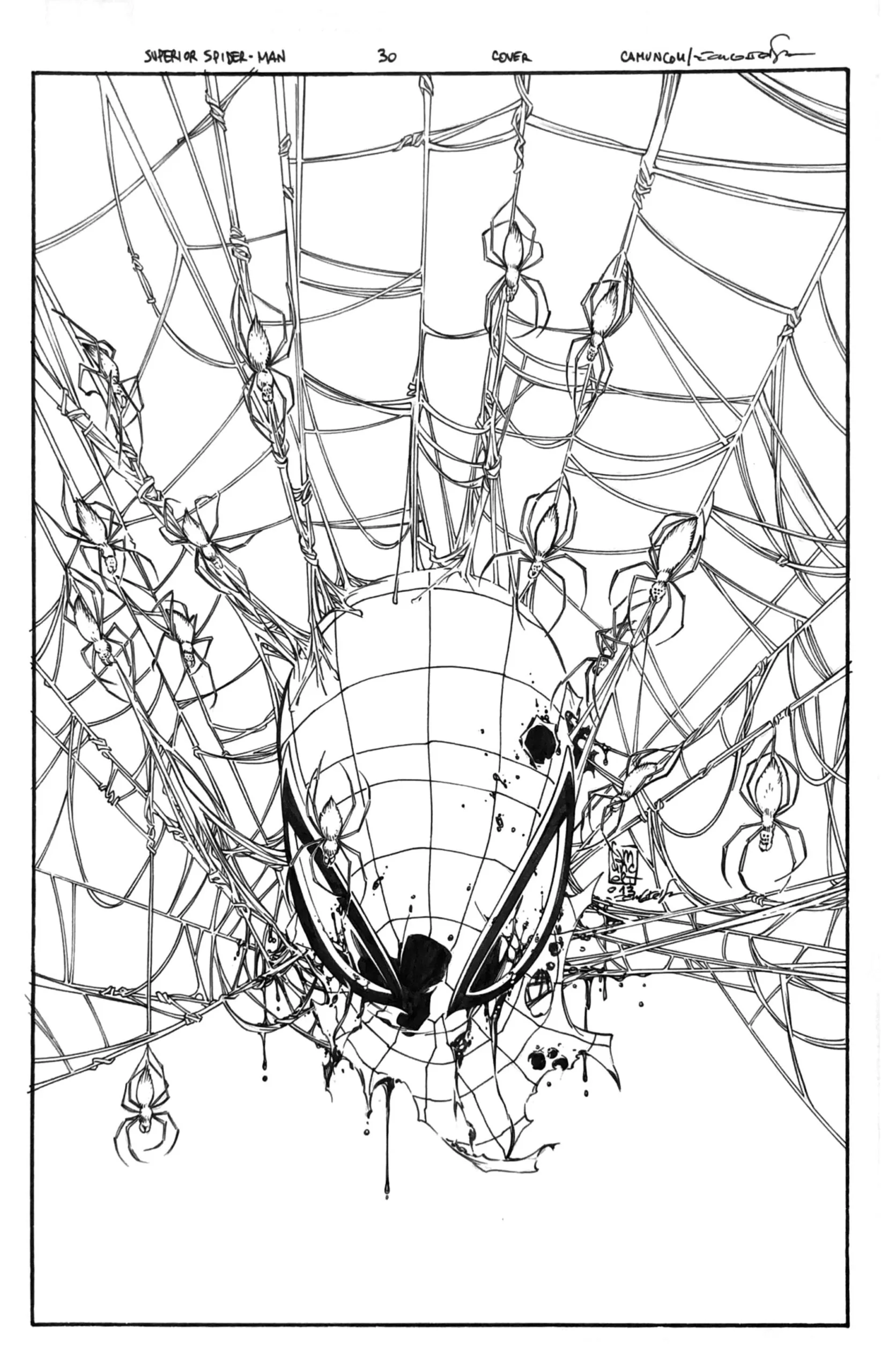 Camuncoli contribuisce all’allestimento con il suo tratto elegante che da sempre caratterizza tavole e illustrazioni, dedicate ai classici supereroi americani, cui offre una sensibilità tutta europea, come per esempio nella miniserie Batman: Europa (scritta da Jim Lee e recentemente ristampata in Italia) in cui il Cavaliere Oscuro deve indagare in quattro differenti capitali europee. Questa propensione allo scambio culturale ha concesso a Camuncoli la possibilità di illustrare anche alcune delle serie italiane più famose, come Diabolik e gli Scorpioni del Deserto. Le tavole esposte, tutte di supereroi, consentono anche di fare un breve ma intenso excursus nella carriera di Camuncoli e nel suo percorso artistico, con disegni dipinti a mano, altri con inserti prodotti con la tavola digitale e disegni in cui si può notare la differenza tra le matite e il ripasso a china.