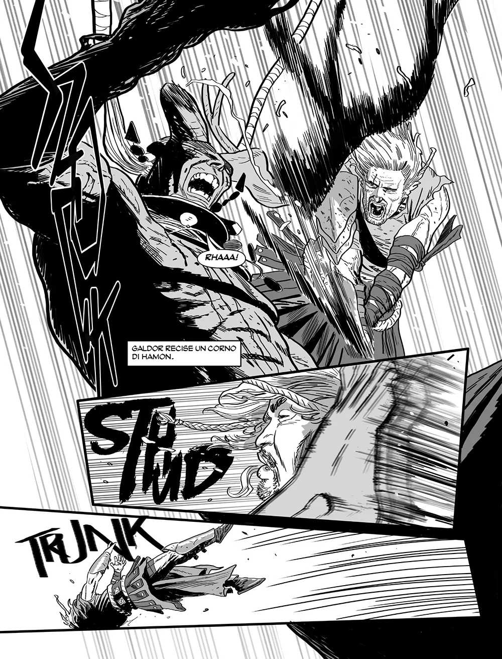 Non saranno solo queste le analogie, le citazioni e gli omaggi a LOTR che troveremo nell’albo e – ci tengo a sottolineare – mai maliziose, grottesche o spudorate, bensì sempre piacevoli e nostalgiche di quel gran capolavoro di Tolkien poi adattato per il cinema da Peter Jackson.
