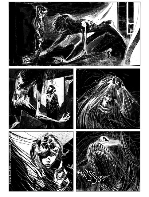 Invero, nonostante un eccessivo manicheismo e tutti gli altri difetti di cui sopra, la storia è comunque ben scritta, tanto da scorrere persino piacevolmente, in particolare nelle escursioni più orrorifiche. Inoltre, le situazioni più angoscianti sono rese alla perfezione dal lavoro magistrale di Paolo Armitano che riesce, con le sue linee e le sue ombre, quasi a colmarne le lacune (quasi).
