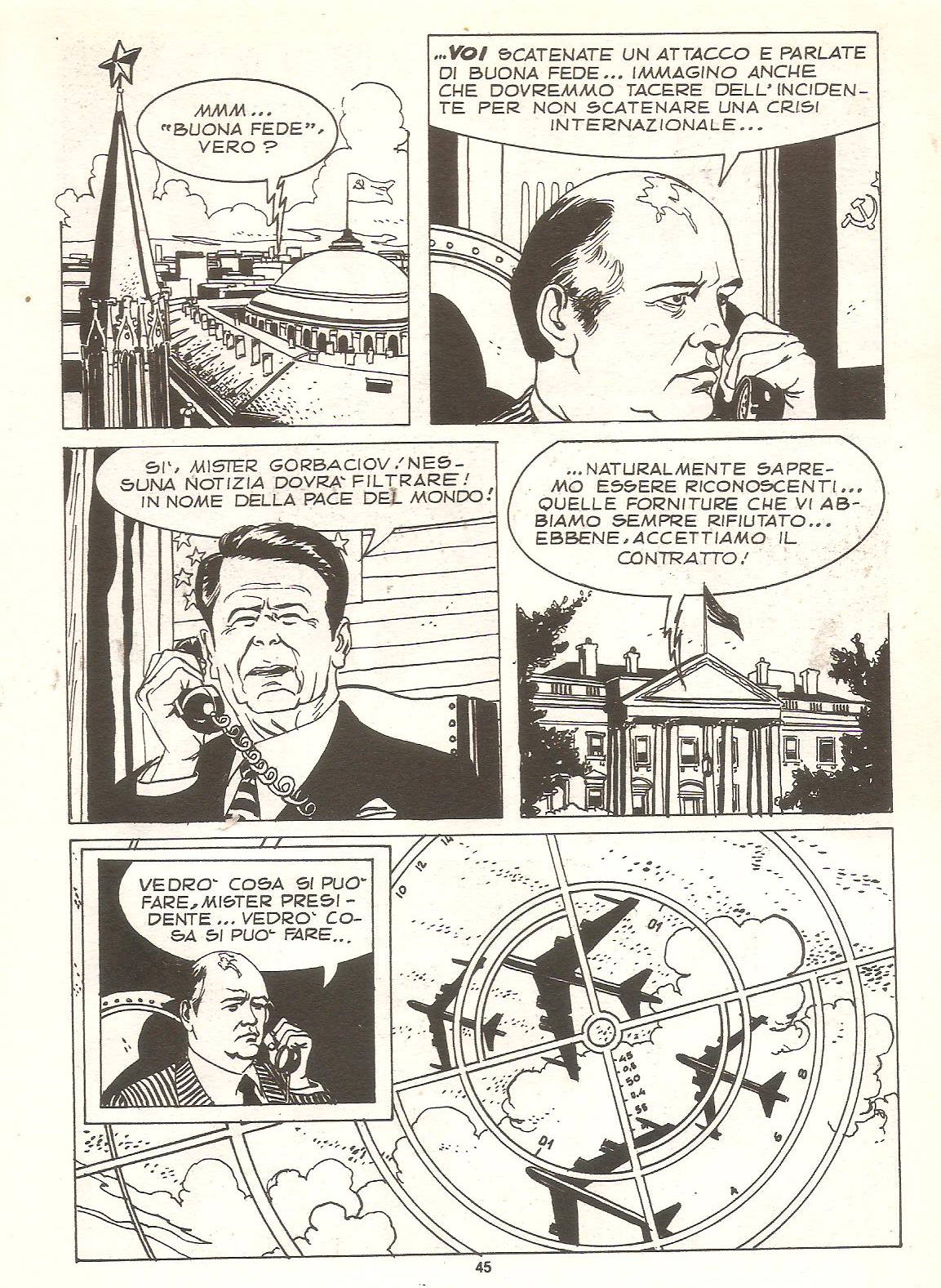 Nel farlo, ci addentriamo in un contesto storico ben preciso: siamo nel 1985, in quella che potremmo definire come la fase finale della Guerra Fredda, e Alfredo Castelli ci descrive – sagacemente – gli attori che vedremo in scena, siano essi inventati e/o reali… vedi il Presidente degli USA Ronald Reagan e il Segretario Generale del PCUS Michail Gorbačëv.