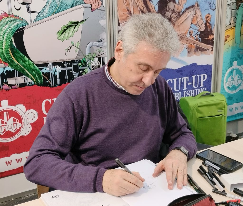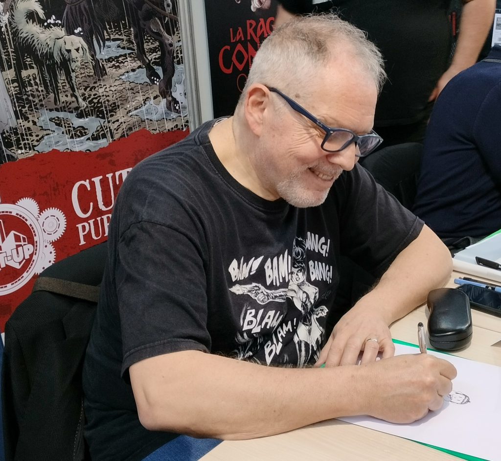 Il disegnatore di Torino, che ha portato al Comics due autoproduzioni di fantascienza, il fumetto BOB e la riedizione del romanzo di narrativa per ragazzi Roy Rocket, ci ha espresso il suo parere anche sull’uso dell’Intelligenza Artificiale nel mondo del fumetto (Giardo è stato uno dei primi ad essersi cimentato con le AI generative in Italia, con la realizzazione di una copertina variant per Nathan Never) e delle difficoltà attuali del fumetto popolare in Italia.