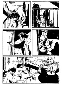Per non parlare delle espressioni facciali dell’impacciato Jimmy, alle prese con questa ventata di amore. Oppure i tratti sempre più sintetici (ancora di più di quelli del n.5) durante l’indagine effettuata sul campo da Nick Raider e dal suo braccio destro Marvin. A tre quarti circa della storia, i movimenti dei due agenti in giro per la città sono stilizzati, quasi veloci e minimalisti, ma chiari e crudi allo stesso tempo. In poche parole, si tratta di arte allo stato puro, all’interno di un fumetto popolare.