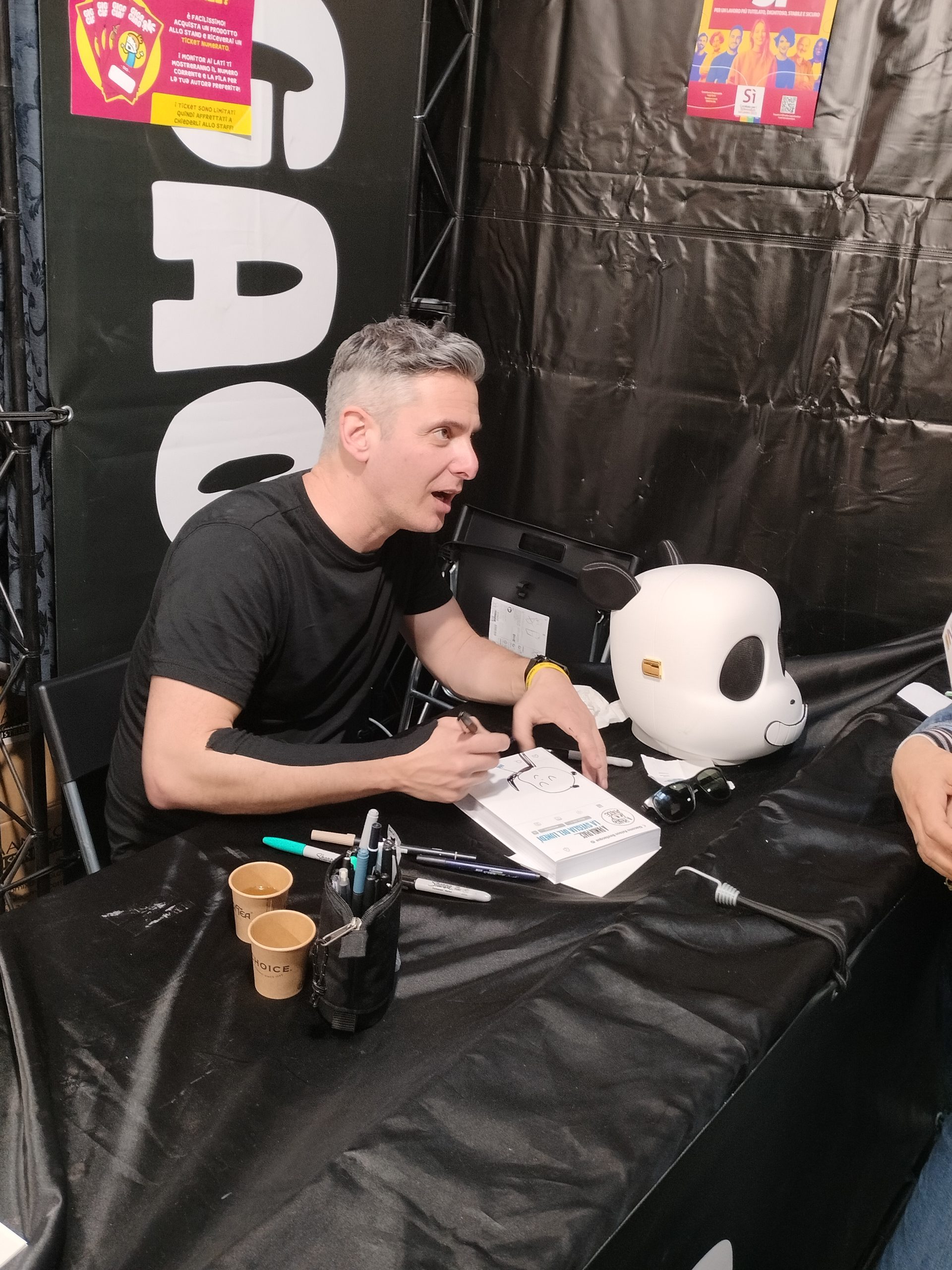 Allo stand Gigaciao era presente Giacomo “Keison” Bevilacqua per i firmacopie del suo A Panda piace… la sveglia del lunedì, ovvero la nuova raccolta di strisce della sua irresistibile creazione.