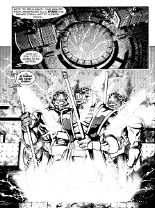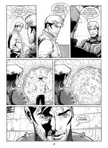 A tale contraddizione si ascrive anche tutta la sequenza ambientata a Laputa: pur essendo una delle quest di cui prima si è detto, viene introdotta e descritta in maniera troppo how convenient – tra l’altro, la questione della stele in accadico è così posticciamente progettata ed eseguita da far risultare poco gradevole anche il “monologo a due” di MM. Sotto poi il profilo squisitamente tecnico, si è già detto che nella sua avventura a Laputa Martin non ha mai avuto contatti con elementi che sono stati invece piazzati lì quando Vietti ha ripreso il tutto su Nathan Never. In aggiunta, Barone continua a chiamare i Venerabili col nome Shra, che in realtà indica solamente la loro controparte negativa. Queste imprecisioni erano a tutti gli effetti evitabili.