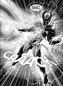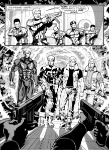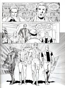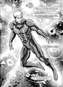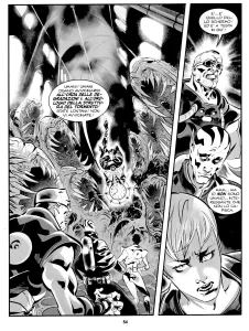 Interessante è il contributo di De Biase, che si concentra su due quest parallele: da un lato i quattro della sovra-realtà selvaggia si trovano a testare la loro tenuta come team contro un cosiddetto trascendente; dall’altro la squadra capeggiata da Nicole attraversa il loro Stargate per affrontare una non meglio specificata minaccia – che si rivelerà essere un altro trascendente. È un tratto plastico, capace di rendere un’idea di dinamismo più marcata rispetto a quella dei vari Cuffaro, Giordano e Giardo, anche grazie ad una lettura della tavola che alterna echi di manga con altri dal taglio più cinematografico. L’uso delle mezzetinte rafforza poi l’idea di ambiguità che comunque soggiace alla psicologia dei personaggi: al di là di quanto già detto per Helios, in quel particolare momento della vicenda il giudizio su Zero è ancora di là dall’essere sciolto – sia da parte degli altri comprimari, che del lettore stesso.