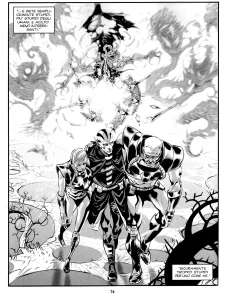 L’ordito della trama prova a svelare corde anche intime dei personaggi, con particolare enfasi posta su Zero: alla fine è lui a osservare, in un misto di sentimenti contrastanti, la maturazione dei suoi compagni di viaggio – dal Martin robotico a Nicole, passando per Johnny, la cui simbiosi con Shadow passa ad un livello più elevato – provando a ridurre ad una cifra interpretabile il connubio di tormento e di estasi che rende l’essere umano un unicum nel Creato. In questo modo riesce anche lui ad agguantare sul finale un momento decisivo di lucidità: se tutto è già scritto, esiste un seppur minimo libero arbitrio? Lui può decidere, o è solo una marionetta? Forse è questa stessa presa di coscienza da parte dei suoi predecessori che li ha portati a ribellarsi alla settupla dei signori quasipotenti? Ma siamo sicuri che anche la loro ribellione non faccia parte del “tutto che è già scritto”? Questo discorso potrebbe avvitarsi su se stesso all’infinito.
