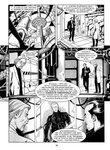 In relazione a ciò, rivediamo la sede della TVA bonelliana con a capo il già noto discendente di Martin, a colloquio con i suoi agenti temporali di trapunta vestiti: come in “Generazioni”, anche in questo caso la scomparsa dell’anomalia li prende di sorpresa; più in generale, è tutta la gestione di questo ramo della vicenda a ricalcare pedissequamente il citato one shot, e nonostante il twist “Vietti-related” rimane come l’impressione di un orpello narrativo malamente gestito. A proposito del twist di cui prima, tanto per buttarla in caciara Barone cala l’asso di Altrove e degli Uomini in Nero. Da un lato, la transizione da Dipartimento 51 ad Altrove, seppur rimandando lontanamente alla fondazione che già conoscevamo, appare quantomeno forzata (da dove si evince che Dipartimento 51 era/sarebbe diventato il porto d’attracco e collettore per gli OOPArts?), per quanto non priva d’interesse per eventuali sviluppi futuri; dall’altro lato, c’è il Martin sfregiato di cui già Jerry, l’agente letterario del BVZM, vagheggiava (e che assomiglia a Reiser): il suo essere a capo degli UiN rimanderebbe terribilmente a teorie già qui esposte.
