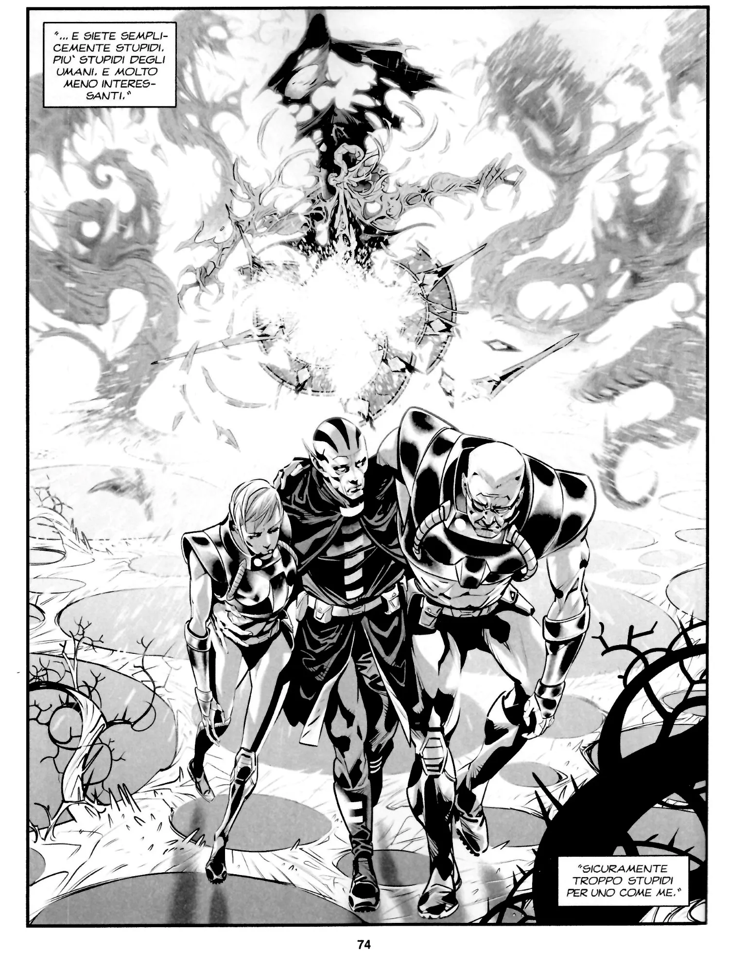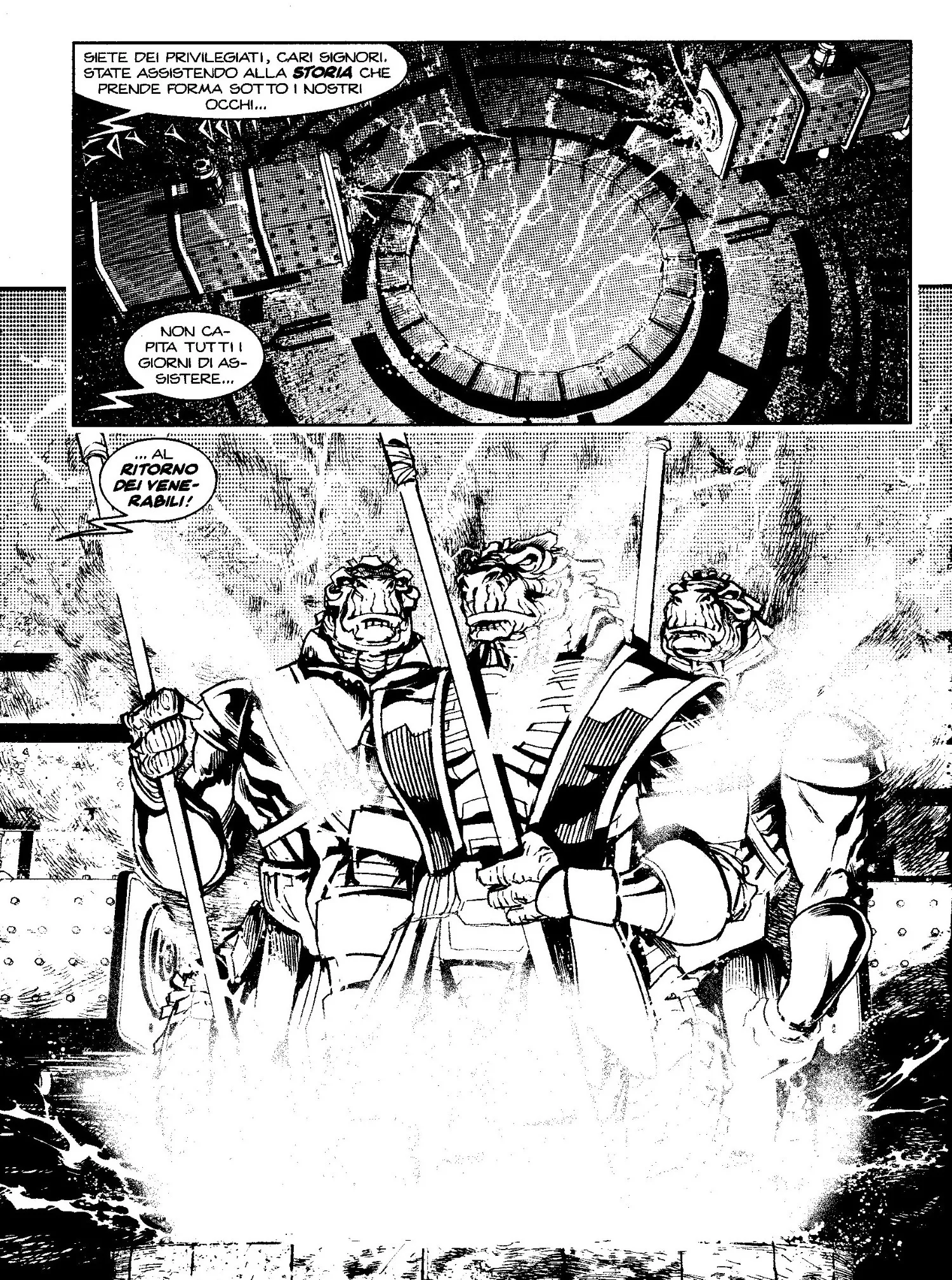 Da ultimo, il finale ha quell’aura tutta italica del “volemose bbene”; la cosa però va intesa in senso positivo, consolatorio per alcuni aspetti, financo catartico per altri, e quasi trascende la “semplice” sconfitta del villain con/senza sigaro per concentrarsi sull’immarcescibile messaggio circa l’importanza della consapevolezza dell’infinito potenziale che alberga nell’animo umano – e poco importa che nel team ci fossero mutati, androidi ed entità non ricorsive. Forse proprio per questo motivo, è soprattutto un sentito omaggio a chi – Bonelli e Castelli – ha dedicato una vita a creare questo immaginario, per cui il tono del discorso ci sta tutto. Meno chiare sono le intenzioni circa la gestione di questi personaggi per il futuro. Tecnicamente parlando, se questi forsepotenti signori della sovra-realtà creano agenti che man mano si ribellano, poi li lasciano andare per conto proprio? Dopo il Pacificatore e lo Studioso, anche il Guerriero seguirà la stessa strada?