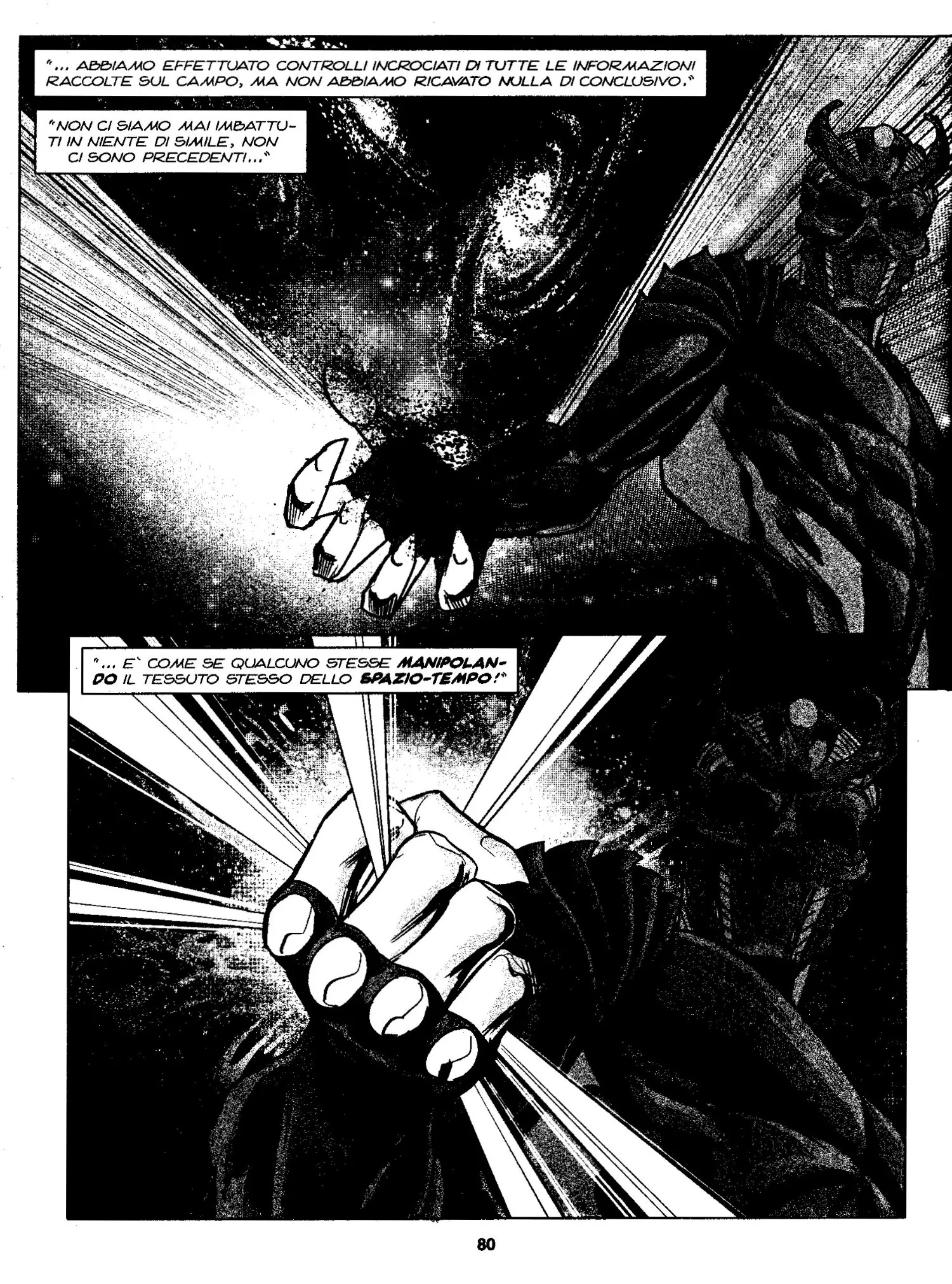 A tale contraddizione si ascrive anche tutta la sequenza ambientata a Laputa: pur essendo una delle quest di cui prima si è detto, viene introdotta e descritta in maniera troppo how convenient – tra l’altro, la questione della stele in accadico è così posticciamente progettata ed eseguita da far risultare poco gradevole anche il “monologo a due” di MM. Sotto poi il profilo squisitamente tecnico, si è già detto che nella sua avventura a Laputa Martin non ha mai avuto contatti con elementi che sono stati invece piazzati lì quando Vietti ha ripreso il tutto su Nathan Never. In aggiunta, Barone continua a chiamare i Venerabili col nome Shra, che in realtà indica solamente la loro controparte negativa. Queste imprecisioni erano a tutti gli effetti evitabili.