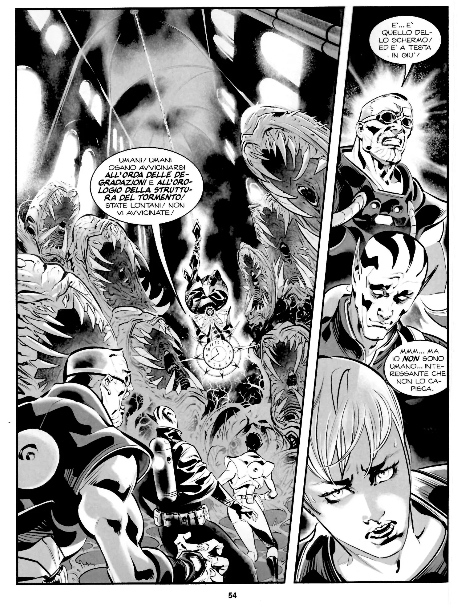 L’ordito della trama prova a svelare corde anche intime dei personaggi, con particolare enfasi posta su Zero: alla fine è lui a osservare, in un misto di sentimenti contrastanti, la maturazione dei suoi compagni di viaggio – dal Martin robotico a Nicole, passando per Johnny, la cui simbiosi con Shadow passa ad un livello più elevato – provando a ridurre ad una cifra interpretabile il connubio di tormento e di estasi che rende l’essere umano un unicum nel Creato. In questo modo riesce anche lui ad agguantare sul finale un momento decisivo di lucidità: se tutto è già scritto, esiste un seppur minimo libero arbitrio? Lui può decidere, o è solo una marionetta? Forse è questa stessa presa di coscienza da parte dei suoi predecessori che li ha portati a ribellarsi alla settupla dei signori quasipotenti? Ma siamo sicuri che anche la loro ribellione non faccia parte del “tutto che è già scritto”? Questo discorso potrebbe avvitarsi su se stesso all’infinito.