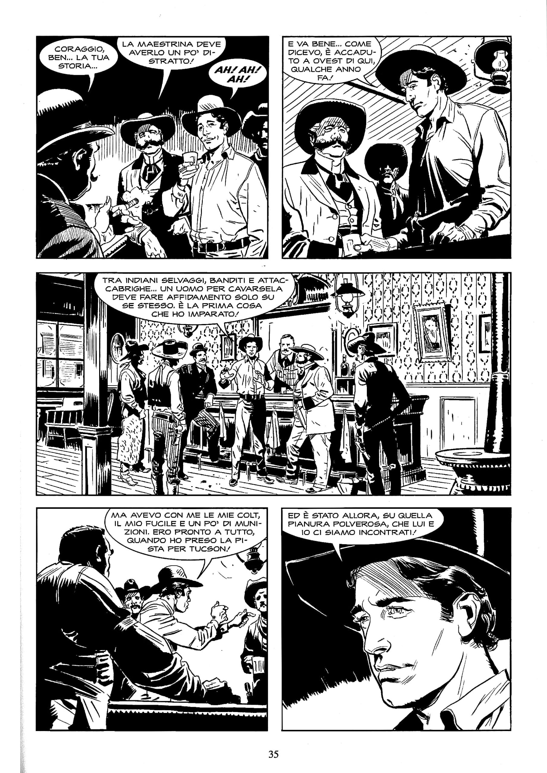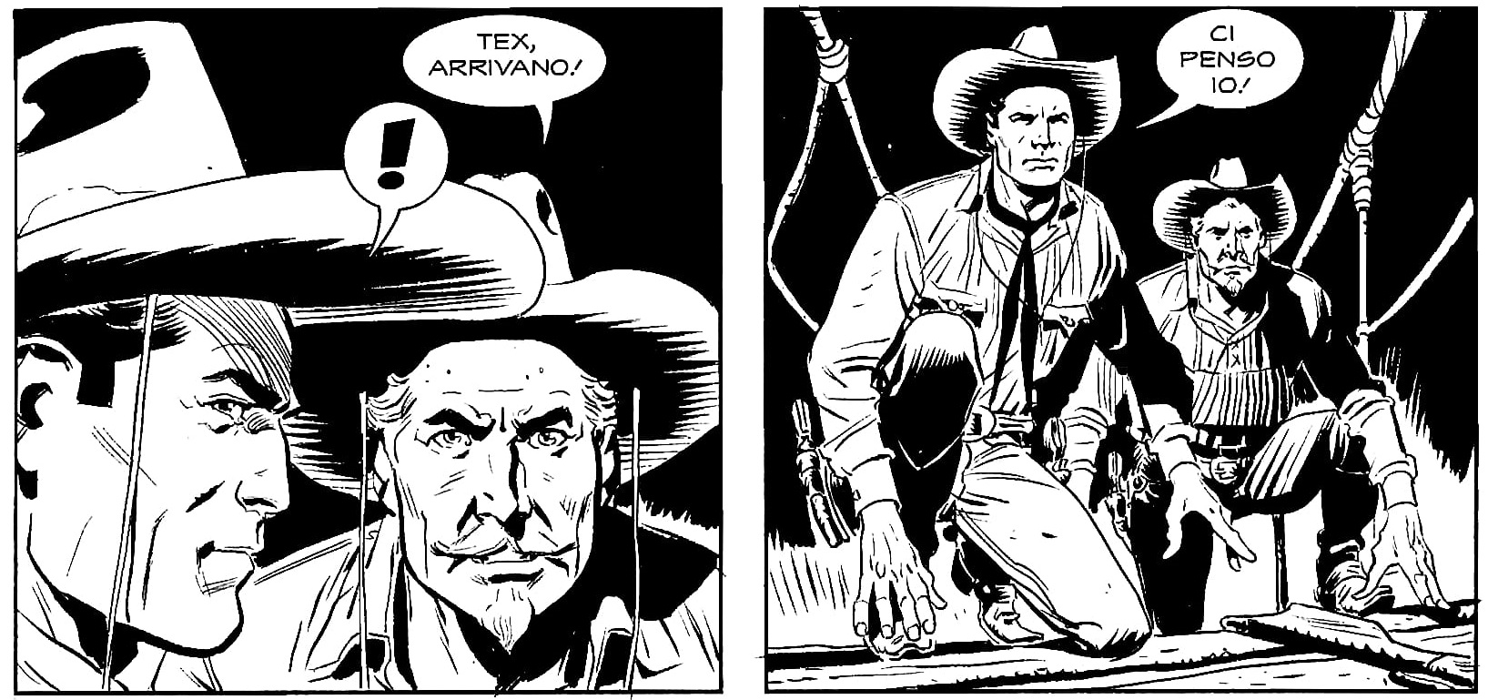 L’ottima definizione psicofisica di ogni personaggio, la costante naturalezza della loro recitazione, l’eccellente resa degli aspetti caratterizzanti il Lontano Ovest americano di fine Ottocento – dalle armi da fuoco ai cavalli, dai differenti modelli di copricapo agli abiti, dagli spettacolari scenari naturali ai curati interni -; gli intensi, stupendi primi piani dei protagonisti – di Tex in particolare – e l’estrema leggibilità di ogni istante della narrazione assicurata tanto da un codice grafico sintetico ed efficace, quanto dalla calibrata unione e dai netti contrasti del bianco e del suo opposto, testimoniano senza la minima reticenza non solo dell’indiscusso, ormai maturo talento dell’artista genovese, ma anche dell’amore, dell’entusiasmo e del rispetto che egli non smette di riservare al mondo di Aquila della Notte.
