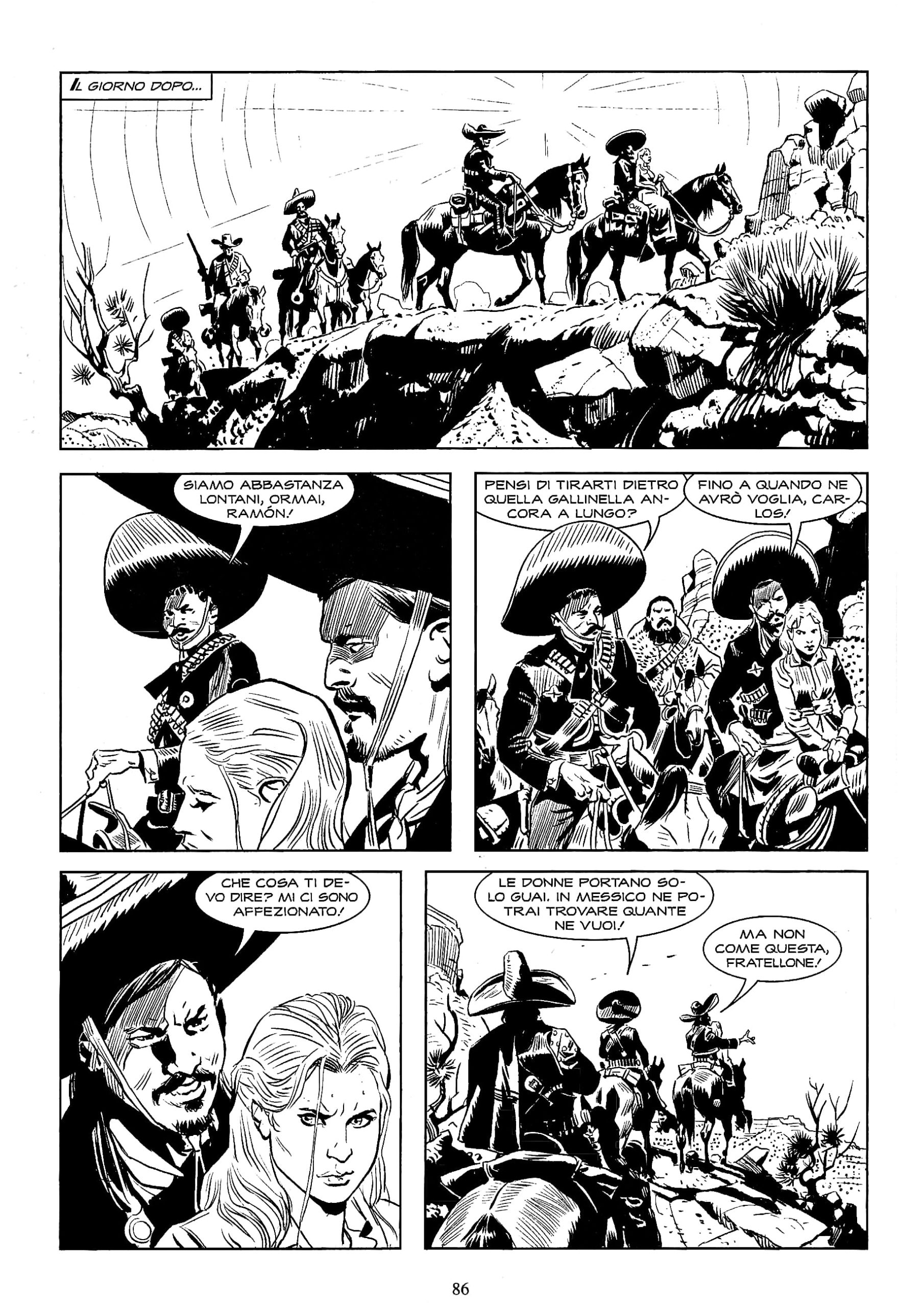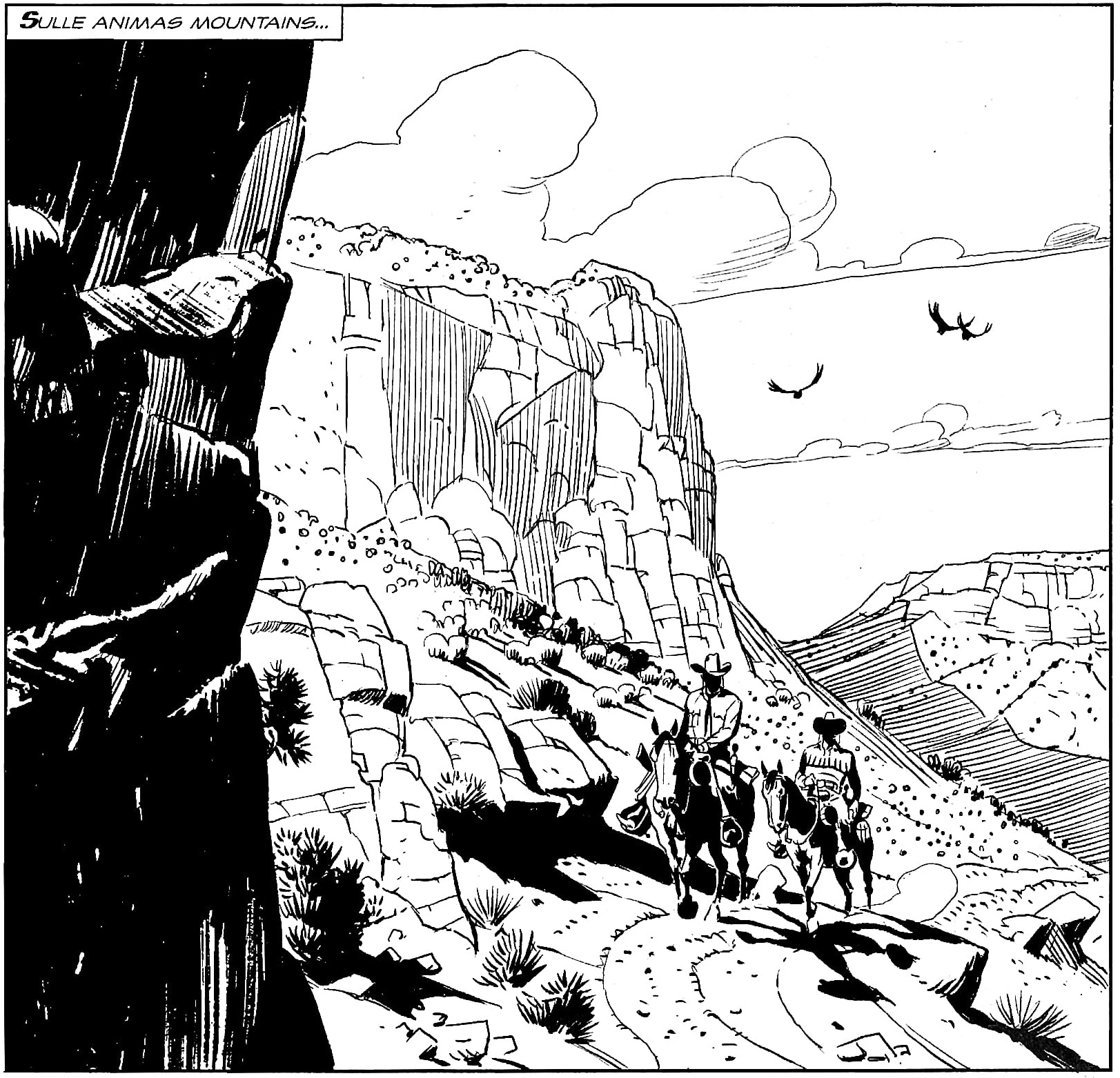 Ciò che più sgomenta, nel lavoro di Pasquale Ruju, è l’offerta dell’ennesima storia inficiata dal solito, annoso problema: la pochezza dei nemici di Tex e Carson, il loro spessore psichico decisamente inconsistente, per nulla abile a far risaltare le straordinarie doti dei due. E infatti questi – dopo essere riusciti nell’impresa di rimediare la oltremodo magra figura di trovare le tracce degli uomini dei Puentes sulle Animas Mountains solamente dopo parecchio tempo e soprattutto per merito della buona sorte – risolvono la questione in regime di un’amministrazione più che ordinaria, senza eccessivi affanni, consapevoli che l’aver risparmiato energie in questo albo speciale tornerà loro assai utile quando saranno chiamati ad affrontare prove effettivamente degne di tal nome.