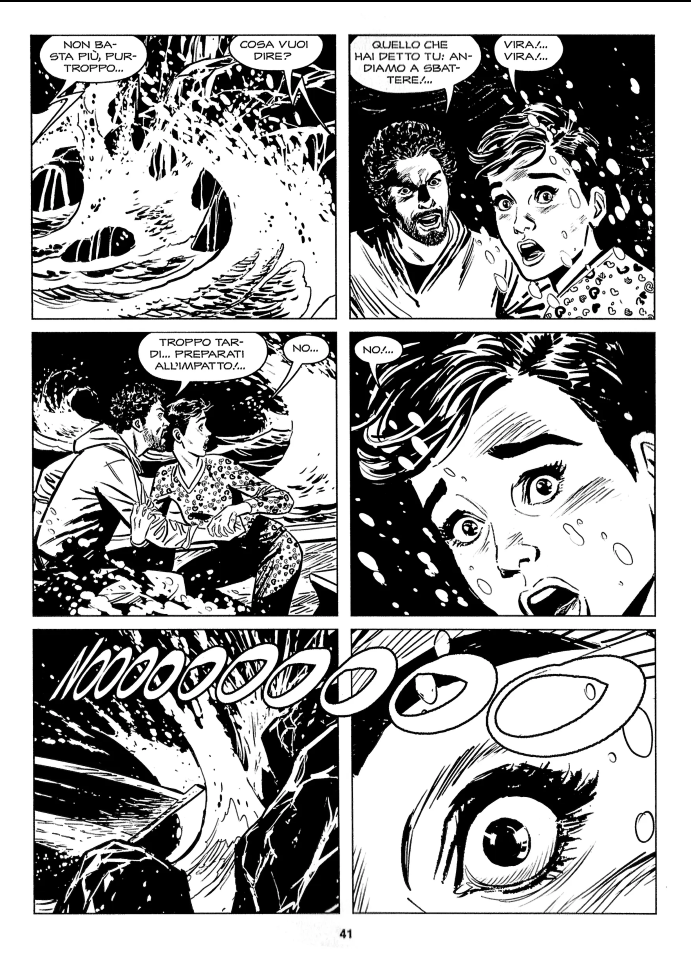 Tutto questo almeno nelle intenzioni dell’autore, ma i risultati portano a conclusioni ben distanti dai propositi iniziali. Intanto la suggestiva ambientazione dell’isola non risulta cosi determinante per edificare l’architettura narrativa del plot: l’ambiente circostante non viene mai percepito dai protagonisti come una minaccia ulteriore ma, almeno per come viene descritto, risulta lontano, distante, in definitiva anonimo. Esattamente come gli antagonisti che, per quanto raffigurati minuziosamente in perfetto stile berardiano, non bucano mai la pagina e non si distaccano mai dall’immagine scialba che si ha di loro, una fin troppo ordinaria e raccogliticcia banda di rapinatori semi improvvisati. Tutto tranne degli antagonisti di spessore, insomma.