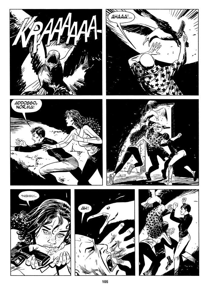Ma non sono loro la delusione maggiore della storia. A fallire in maniera netta è proprio l’esperimento più audace tentato da Berardi, il tentativo di presentare sotto una luce nuova le due coprotagoniste della vicenda, Norma ed Emily. La prima non va al di là del suo solito compitino da bella ragazza in pericolo, vittima delle indesiderate attenzioni dei componenti della gang e spesso in preda ad attacchi di fastidiosa isteria. La grintosa domestica, invece, ci prova a farsi valere, anche a furia di padellate in testa agli avversari.