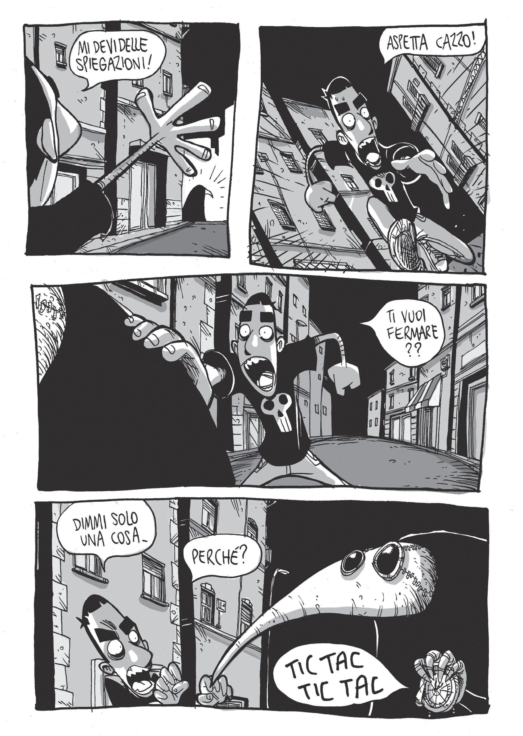 Calcare parte allora come personaggio che deve comprendere chi è, eppure il fumetto non si conclude dandoci questa soddisfazione. Non lo vedremo mai come una persona realizzata, compiuta, finalmente conscia di qualcosa che prima ignorava. Certo, una conclusione c’è ma essa contiene al suo interno anche l’ineluttabilità di averla raggiunta troppo tardi. Ecco che allora è nuovamente il tempo, il “ticchettio” dell’orologio da taschino di un pennuto incappucciato assolutamente inquietante, a ripresentarsi come dimensione ultima a chiusura della storia.