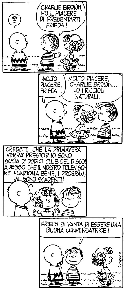 Naturalmente, come successo in altri volumetti, non tutte le strisce erano dedicate all’argomento principale della raccolta. In questa occasione, ad esempio, appariva per la prima volta Frieda, che non perdeva occasione per vantarsi dei suoi riccioli naturali: un nuovo personaggio che andava ad aggiungersi al fantastico universo dei Peanuts.