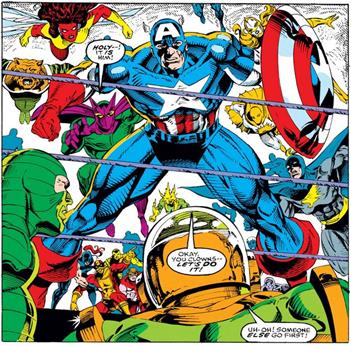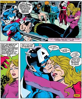 Ma nessuno vota a favore della sua proposta. Questo albo contiene, a parere di chi scrive, uno dei più bei racconti di Cap scritti da Mark Gruenwald: una storia senza lotte e combattimenti che focalizza l’attenzione sui sentimenti e sullo spirito che muovono la Leggenda Vivente e i suoi amici Vendicatori. Questa chicca porta anche all’inevitabile confronto di Steve con Tony Stark dopo tutte le divergenze passate: i due riescono a chiarirsi reciprocamente e decidono di dimenticare il passato con una stretta di mano.