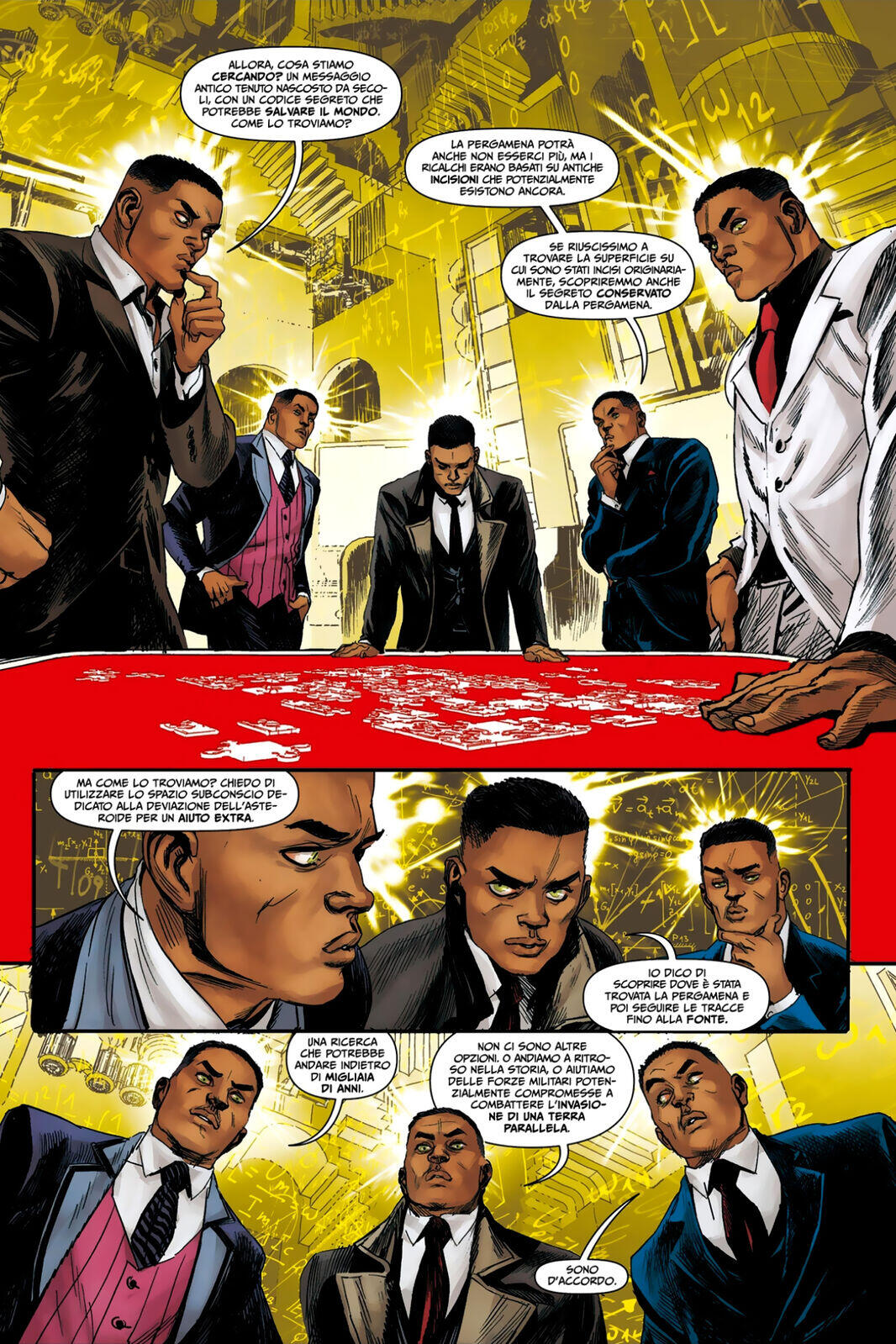Il dover gestire un personaggio dall’intelligenza multiforme e multitasking (quasi?) ai limiti del potenziale umano ha in certo qual modo condizionato molte scelte di sceneggiatura: alcuni passaggi risultano eccessivamente veloci, quasi appunto a voler assecondare le superiori dinamiche intellettive di Edison, ma dal punto di vista narrativo la cosa è a volte di ostica fruizione, e viene alla fine controbilanciata solo grazie ad un’alternanza di stili e registri che, inducendo un frenetico montaggio delle tavole, provano a smorzare le citate difficoltà di lettura – che a loro volta rimandano alla altrettanto citata questione della difficile empatia.
