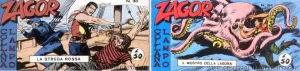 Poi uBC ha lanciato le Short Review… e di colpo ho trovato la soluzione a tutti i miei dubbi: questo nuovo formato era perfetto per la nuova rubrica che avevo in mente! Ho così aspettato qualche settimana per vedere se questi pezzi brevi o brevissimi stavano carburando, mentre nel frattempo abbozzavo alcuni articoli che costituissero una riserva da cui attingere. E quando, con una curiosa coincidenza, la ristampa in volume di una particolare storia di Zagor è apparsa in libreria, non ho avuto più dubbi e ho proposto la mia nuova rubrica al direttore. Sto parlando del classico di Nolitta & Ferri Il mostro della laguna, la cui prima pubblicazione risale in realtà agli anni ’60 (prima nel formato a striscia, poi nella collana mensile) ma a cui è legato un mio ricordo personale dei primi anni ’70 come scoprirete leggendo il primo articolo di questa nuova rubrica. Sappiate fin d’ora che non ci troverete analisi approfondite sul fatto che è il punto d’inizio della “prima trasferta” zagoriana, o che i due autori sfornano un risultato eccellente grazie a personaggi perfettamente calibrati (il malvagio Nilsen, il monomaniaco Lookford…) e a disegni stratosferici: per quello rimando all’introduzione del volume – a cura di Graziano Frediani e Luca Barbieri – o all’analisi di Moreno Burattini nel suo blog Utili sputi di riflessione. Il mio ricordo è molto più breve, più personale, più “appassionato”, come scoprirete qui – e come succederà per i prossimi articoli, in formato Short Review, dedicati a questi mitici anni ’70 . Buona lettura.