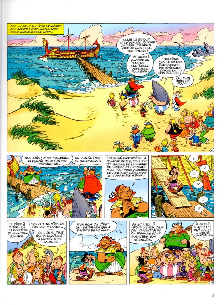 La lezione di Goscinny è appresa appieno, non solo nei nomi: si ride di gusto tanto al canto della saudade capace di piegare la legione, che ai clichés portoghesi, di cui Obelix rifiuta quelli culinari (il merluzzo al posto del cinghiale?) e soprattutto alle continue strizzate d’occhio ai malanni nostri – i vacanzieri francesi arrabbiati di brutto perché il Senato romano vuole aumentare l’età della pensione, mentre “Brutus e compagnia non si ammazzano certo al lavoro”; la scenetta esilarante della password richiesta per entrare nella ditta di garum, il baccalà caro a Cesare.